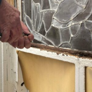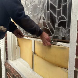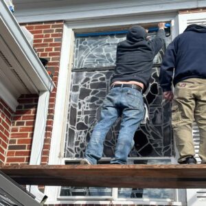 Atonement is in contract with Clagnan Stain Glass Studio from Wall Nj. The project is under way and is going well with all broken protective glass replaced and 5 Vents have been removed for studio repairs.