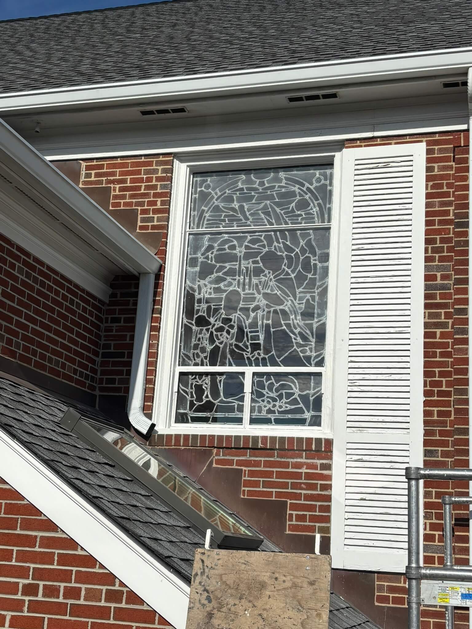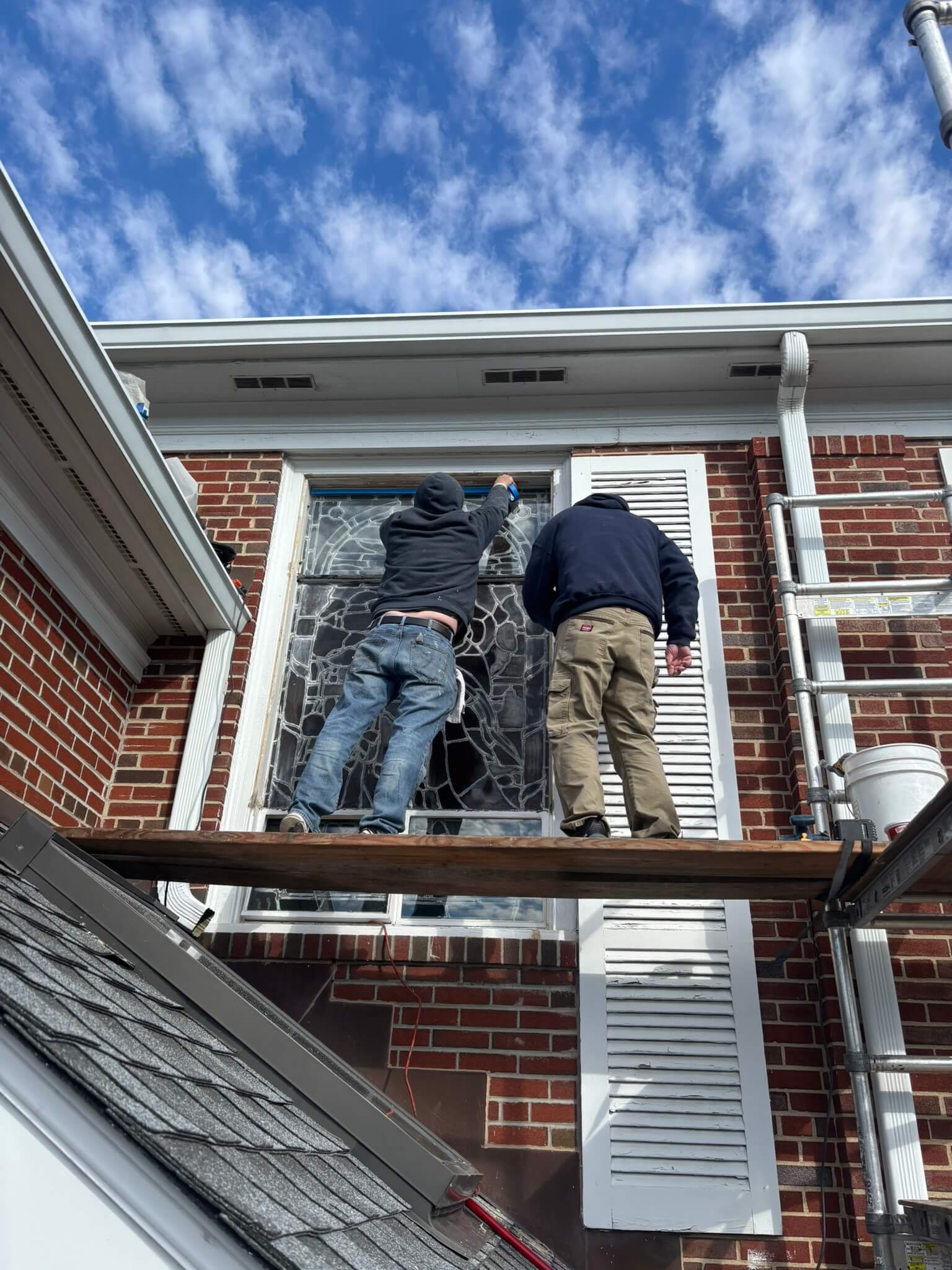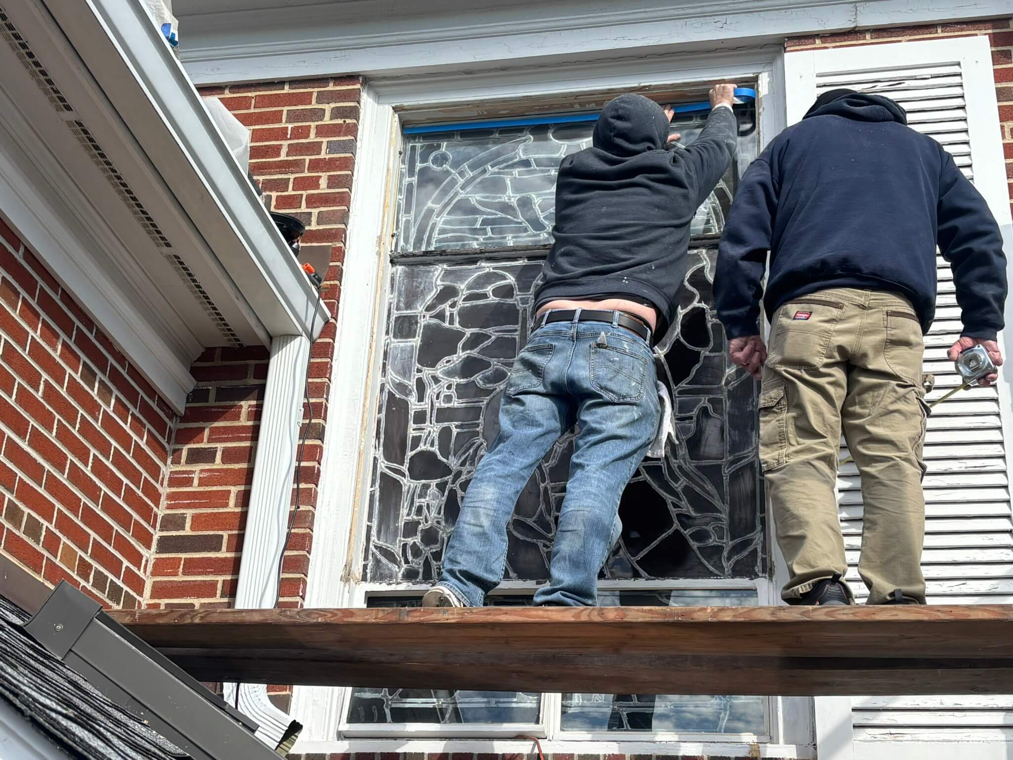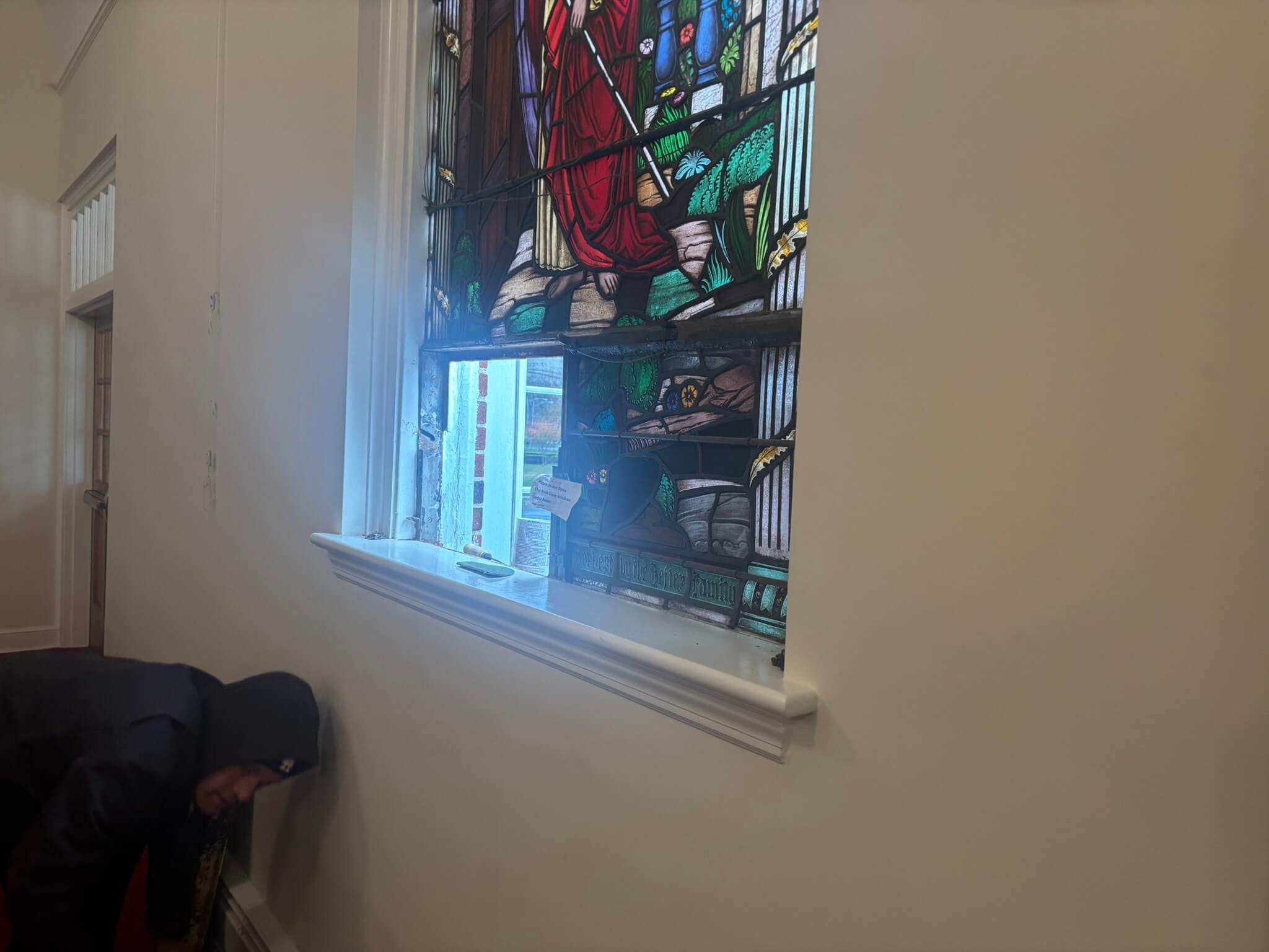 Atonement is in contract with Clagnan Stain Glass Studio from Wall Nj. The project is under way and is going well with all broken protective glass replaced and 5 Vents have been removed for studio repairs.